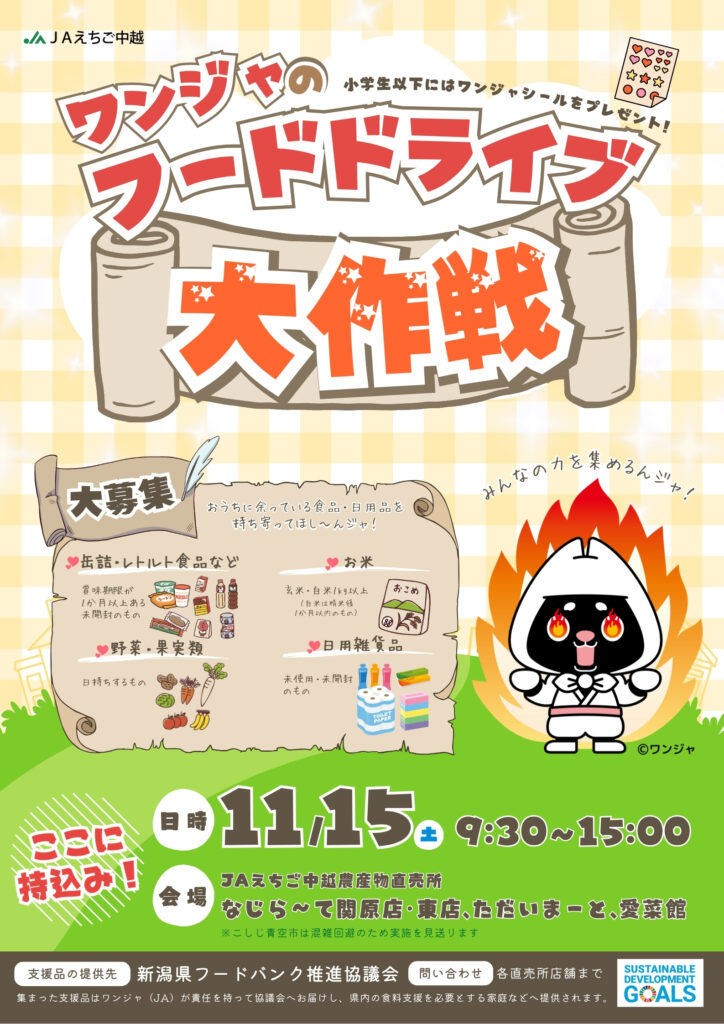 JAえちご中越の直売所4店舗が合同で、「ワンジャのフードドライブ大作戦」を開催します!