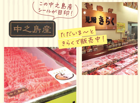 直売所「ただいまーと」内の「ただいまーと きらく」では中之島産カルビが購入できます!
